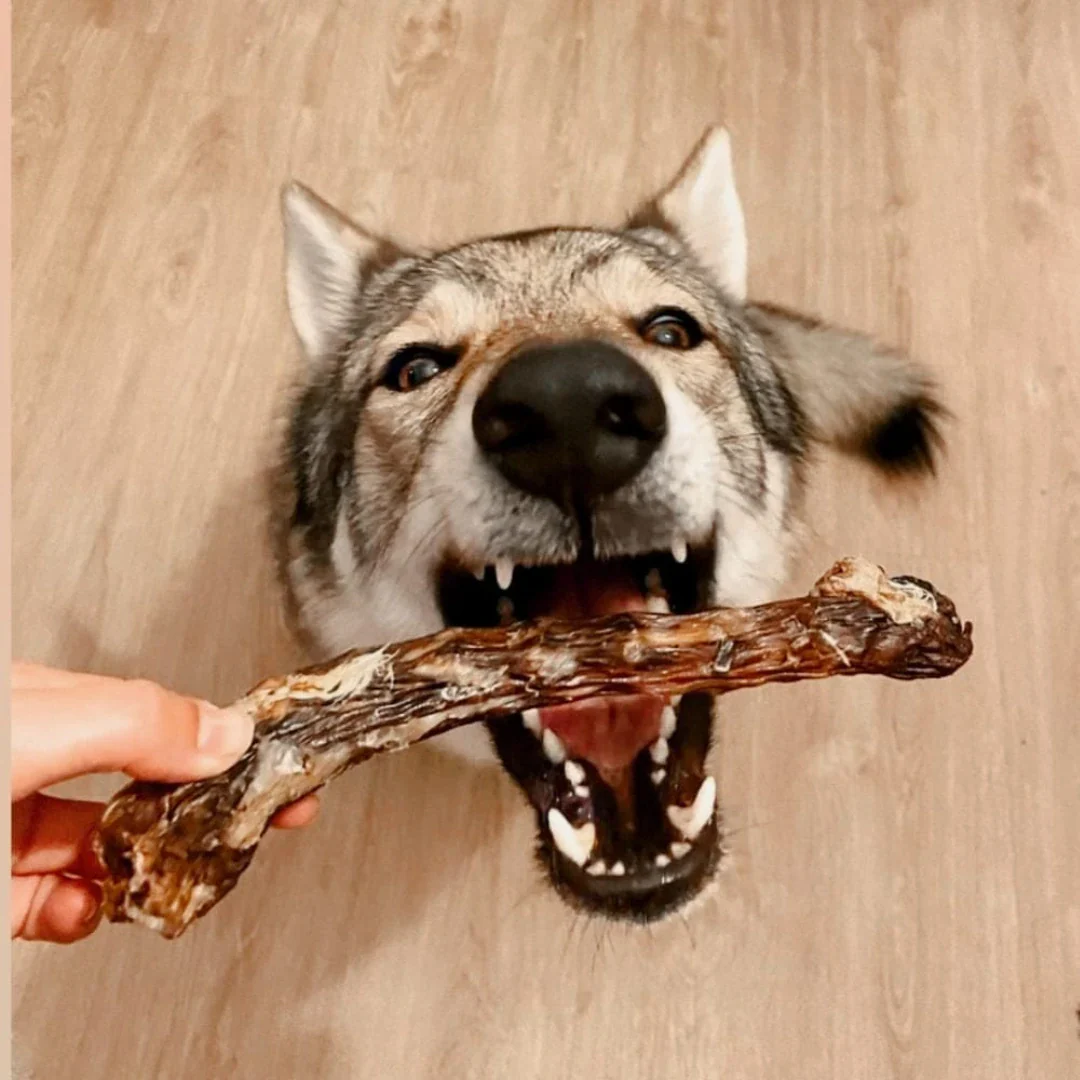 Snack 100% natural hecho a base de cuello de pato deshidratado para perros. Alto contenido en proteína y gran fuente de calcio, potasio y glucosamina.